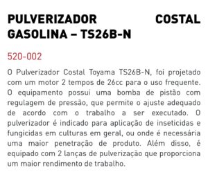 Pulverizador Costal 25LT Gasolina COD 520-002